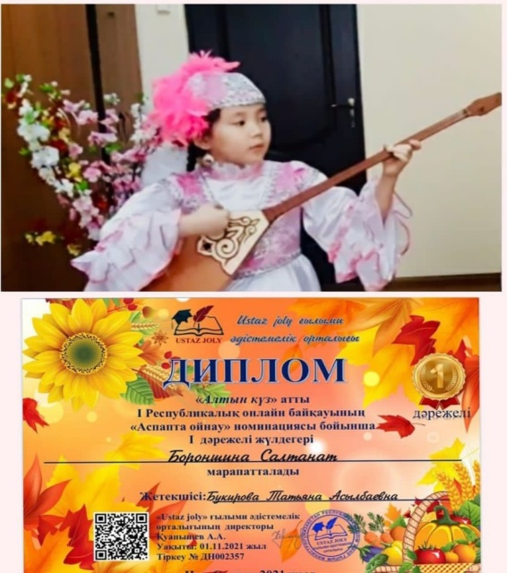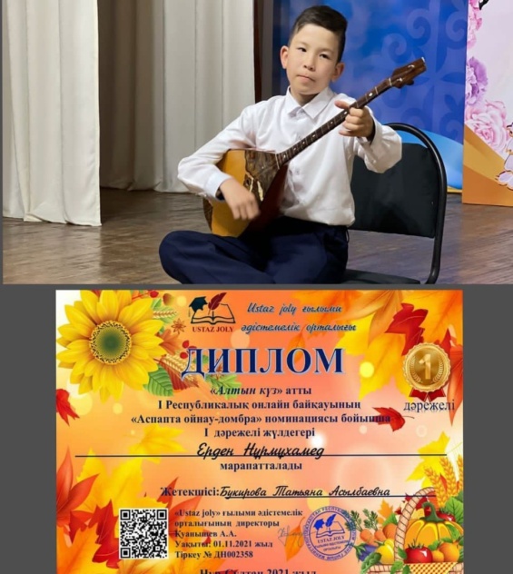 На Республиканском конкурсе «Алтын күз», проходившем в октябре, в г. Нұр-Сұлтан, учащиеся класса домбры- Ерден Нұрмұхамед и Бороншина Салтанат, заняли почетное 1 место.